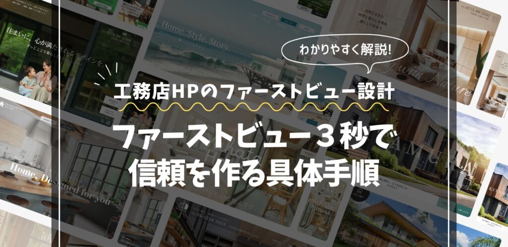 工務店ホームページのトップページデザインでは、最初のファーストビュー設計が成果を大きく左右します。工務店のファーストビューは、3秒で次の3つを伝える必要があります。